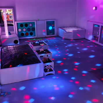 La experiencia se vuelve todavía más poderosa por la riqueza de su entorno multisensorial. El sistema integra elementos como alberca de pelotas con luz y sonido, botonera interactiva, cama de agua, cubo interactivo, difusores de aromas, domos de color, fibra óptica, iluminación perimetral interactiva, paneles táctiles, panel de imagen infinita, pizarrón de luz con rompecabezas, plataformas interactivas y otros componentes diseñados para responder de forma coordinada a los protocolos clínicos. Esto permite construir sesiones más envolventes, más atractivas y más significativas para el usuario, sin perder estructura terapéutica.